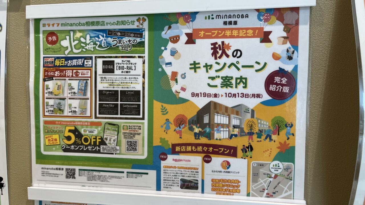 南台3丁目にある「minanoba(ミナノバ)相模原」がオープン半年を迎えたことを記念し、秋のキャンペーンを展開中。2025年9月19日(金)~本日10月13日(月・祝)まで開催しています。小田急線「小田急相模原」駅より徒歩9分ほどのところにあり、県道51号町田厚木線沿いに位置する交通利便性の高い立地です。