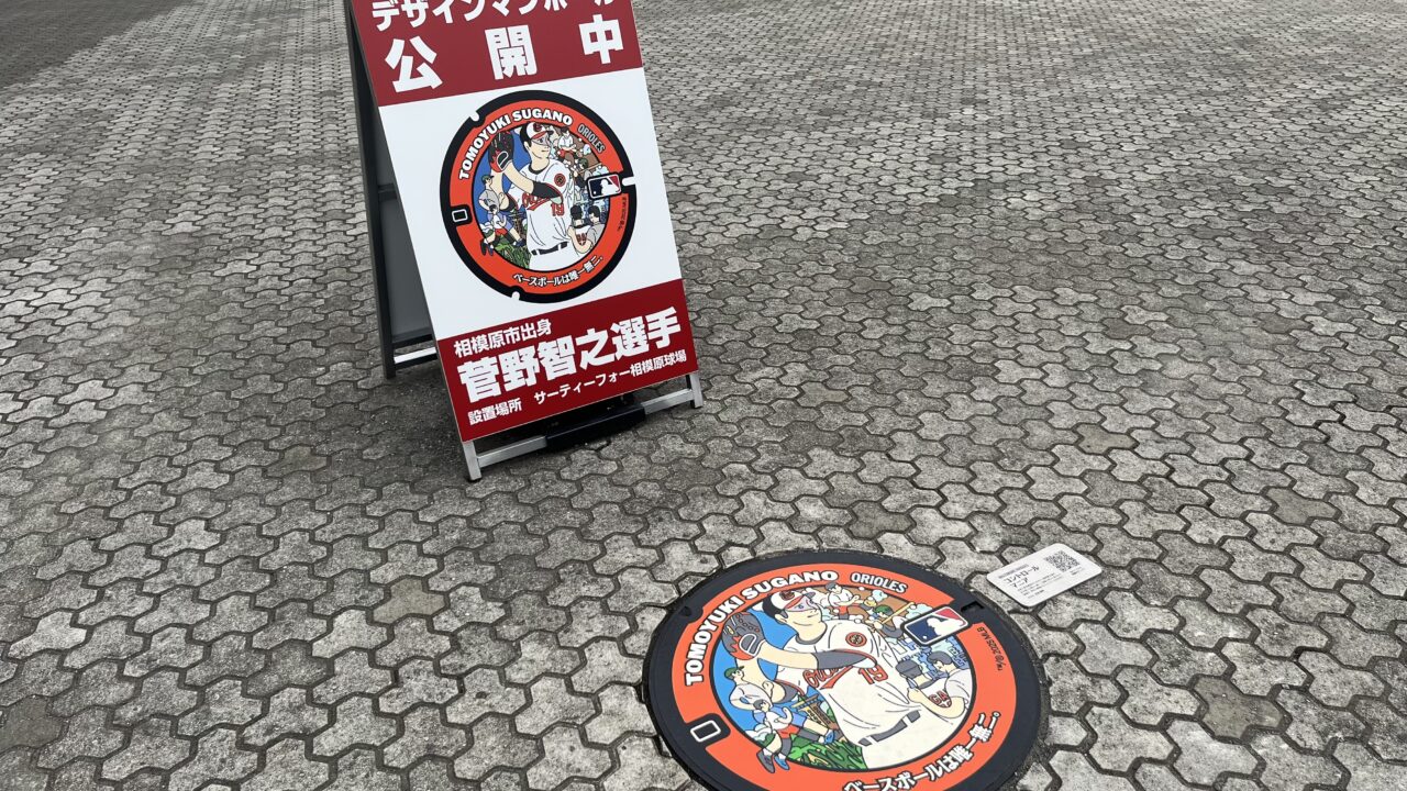【相模原市南区】南区ゆかりのメジャーリーガー・菅野智之選手のデザインマンホールが設置されています 来年6月まで