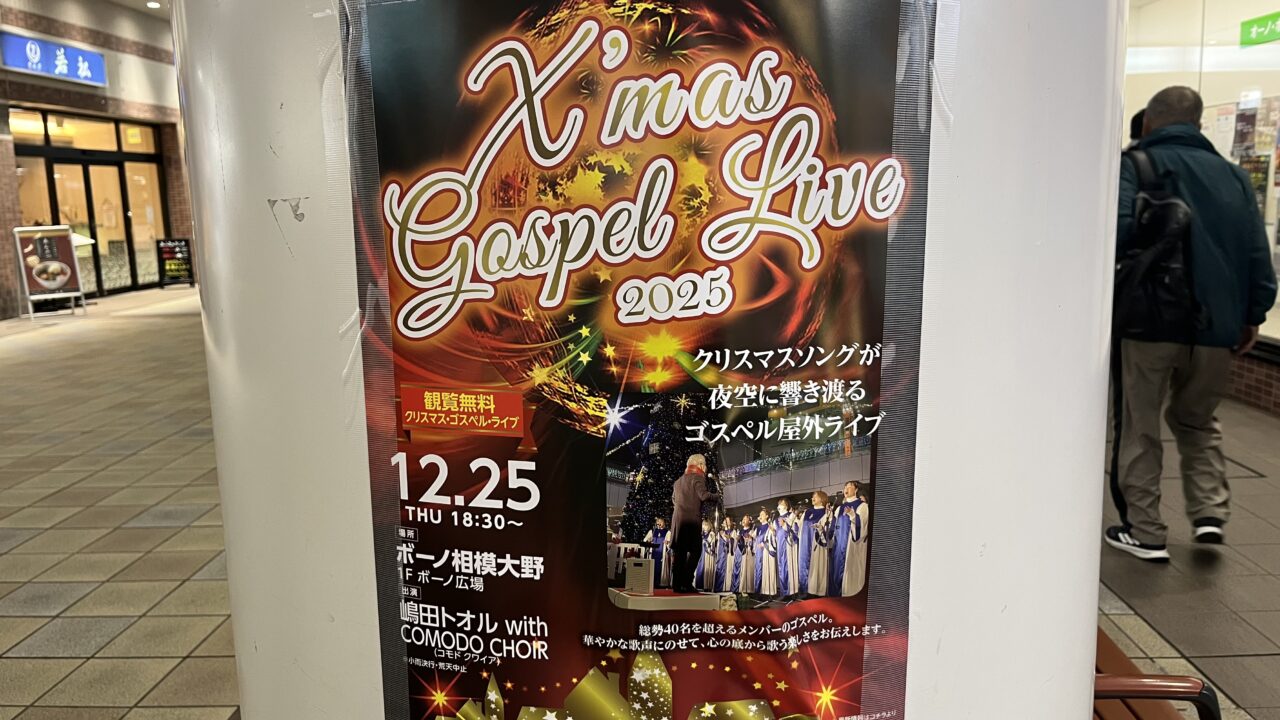 小田急線相模大野駅から徒歩5分ほどの場所にある、ボーノ相模大野で2025年12月25日(木)、18時30分から「クリスマス・ゴスペル・ライブ2025」と題して、クリスマスソングのゴスペル屋外ライブが開催されます。