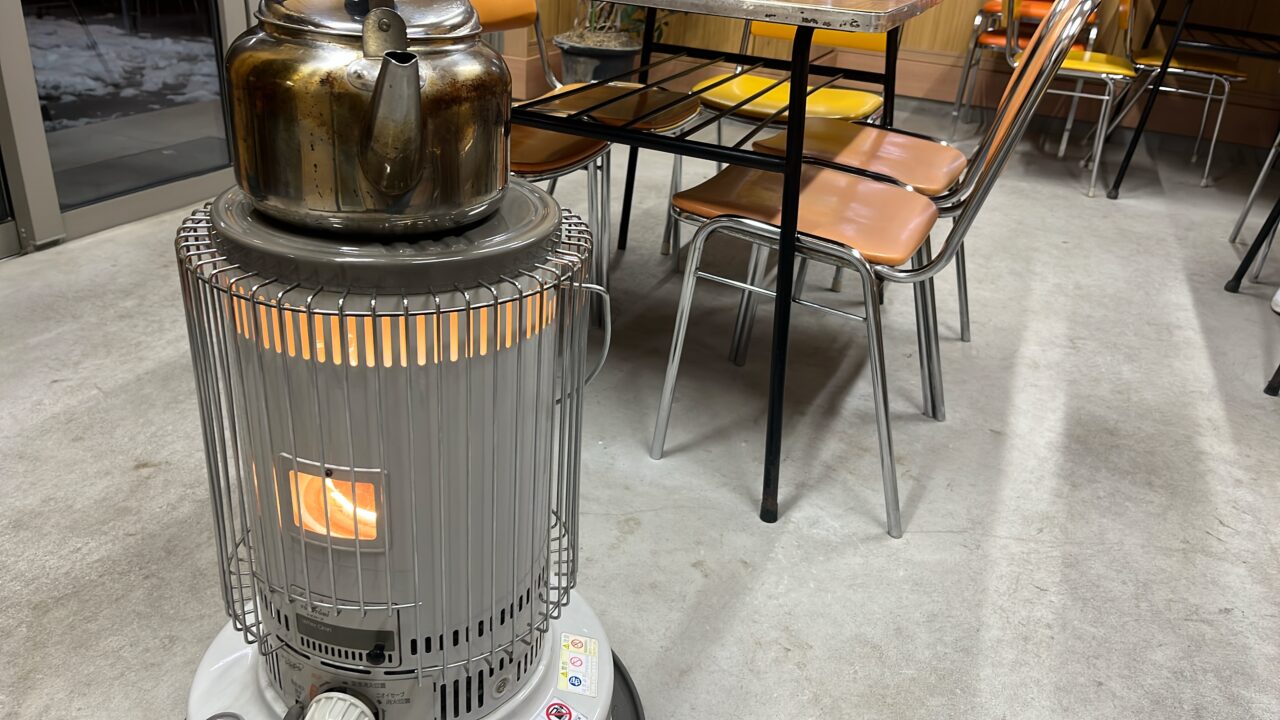 店内には昔懐かしいだるまストーブが! 昭和の雰囲気をそのまま残しているテーブル、椅子からも、なんだか哀愁を感じます。