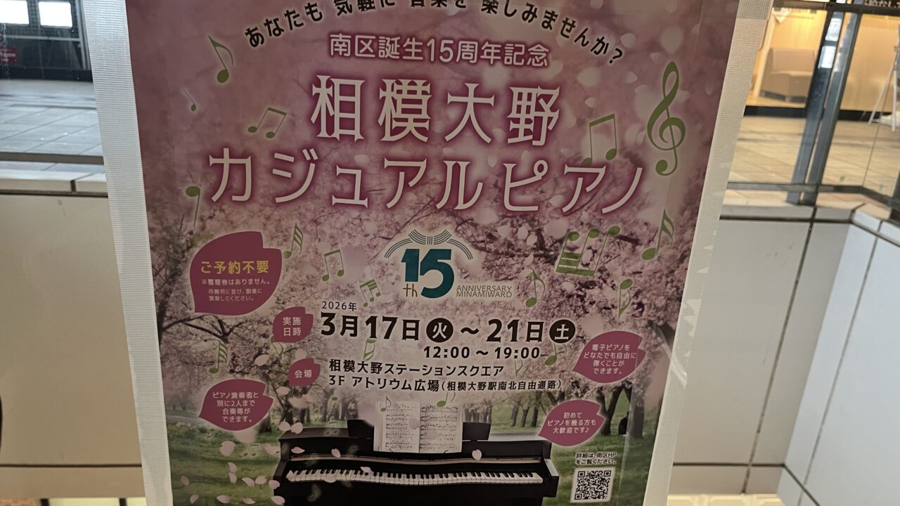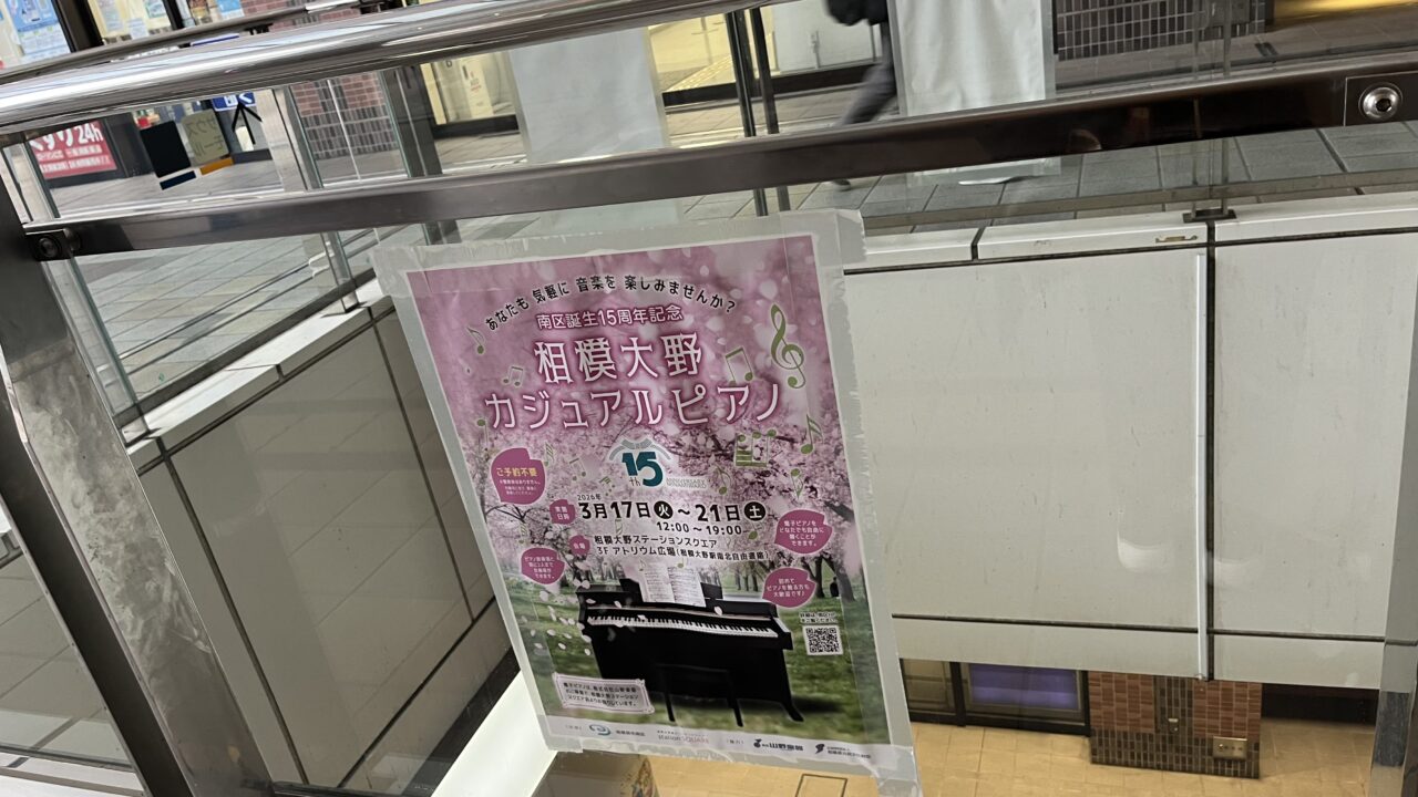 【相模原市南区】今年も「相模大野カジュアルピアノ」が設置されます 3/17から