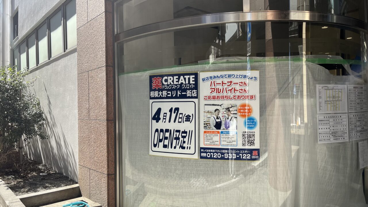 ドラッグストア「クリエイト」の新店舗が、相模大野エリアにオープン予定です。今回開店するのは「相模大野コリドー街店」で、小田急線・相模大野駅から徒歩約4分の立地にあります。駅近でアクセスしやすく、通勤・通学の合間や日常の買い物にも便利な店舗となりそうです。