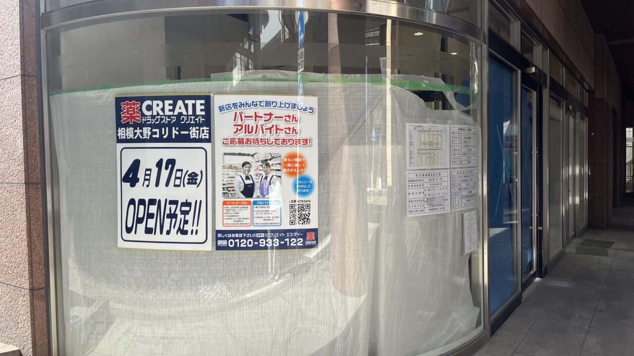 すぐ近くのロビーファイブには「ウエルシア」、そして相模大野駅直結の「マツモトキヨシ matsukiyoLAB 相模大野ステーションスクエア店」、相模大野モアーズ近くの「スギ薬局」など、ドラッグストアが多いエリアに新たにクリエイトが加わることで、利便性はさらに向上しそうです。