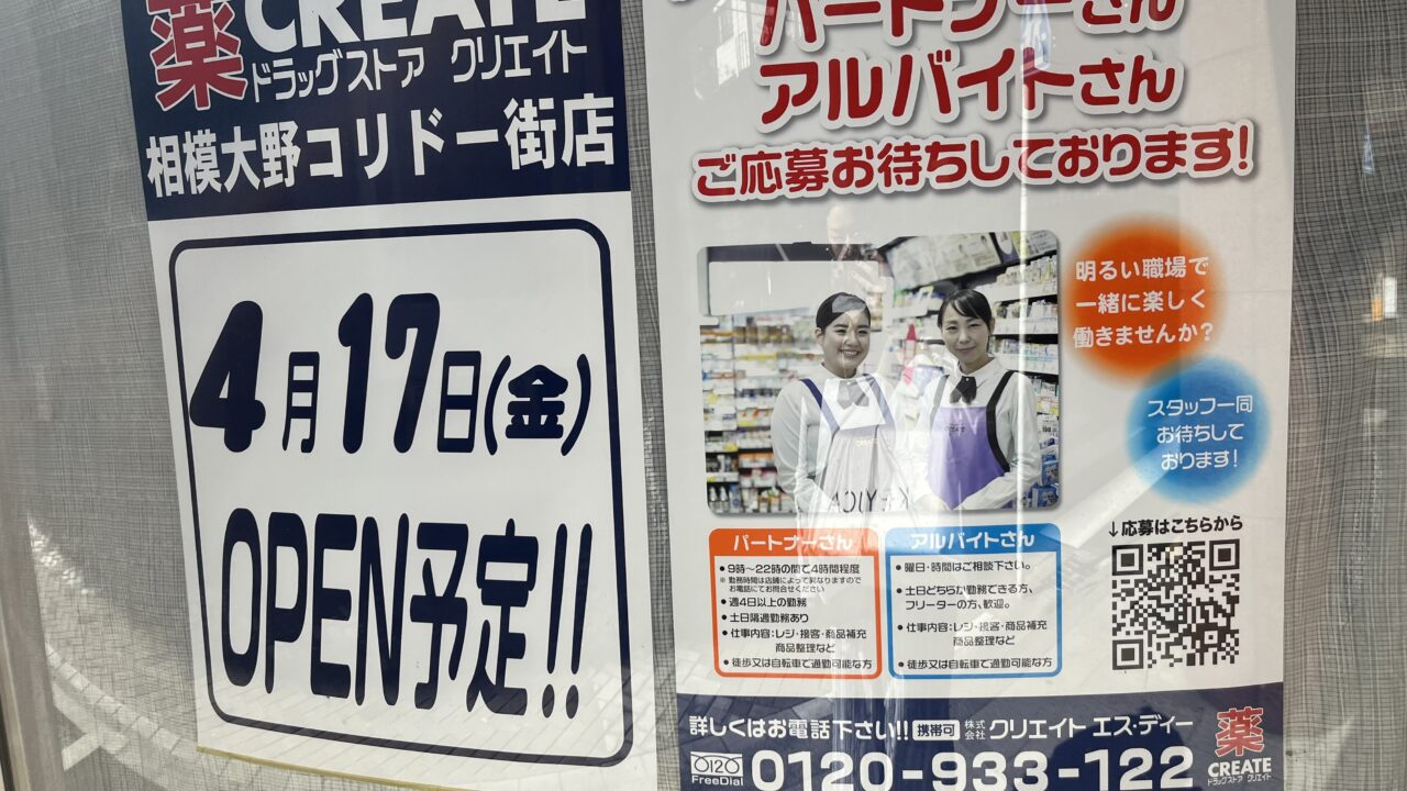 【相模原市南区】相模大野コリドー街に4/17新しくクリエイトがオープンするようです