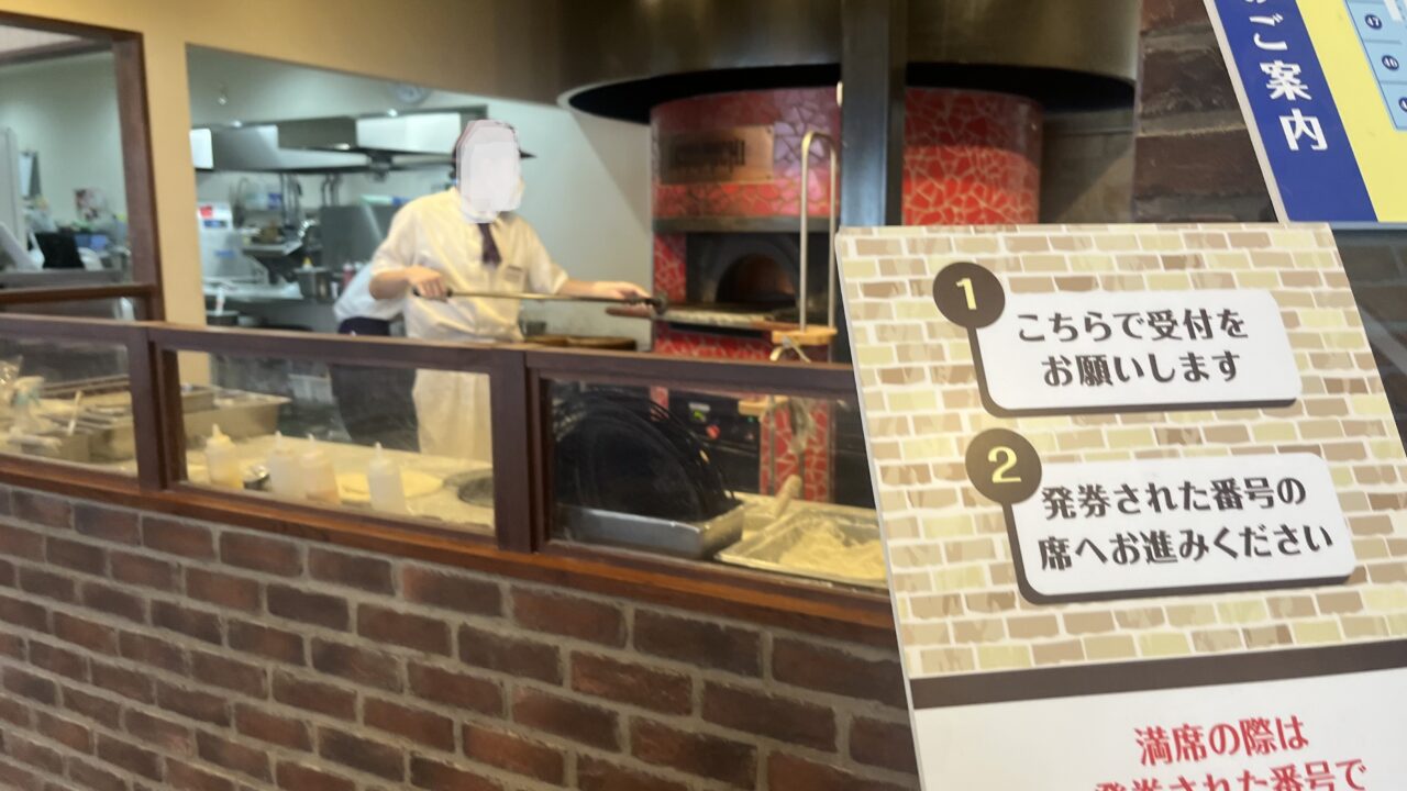 こちらのお店は専用窯を用いて焼き上げた自家製ピッツァが自慢のイタリアンレストランです。店内の入り口近くにはオープンキッチンが設置され、調理の様子が見学できるようになっていました。